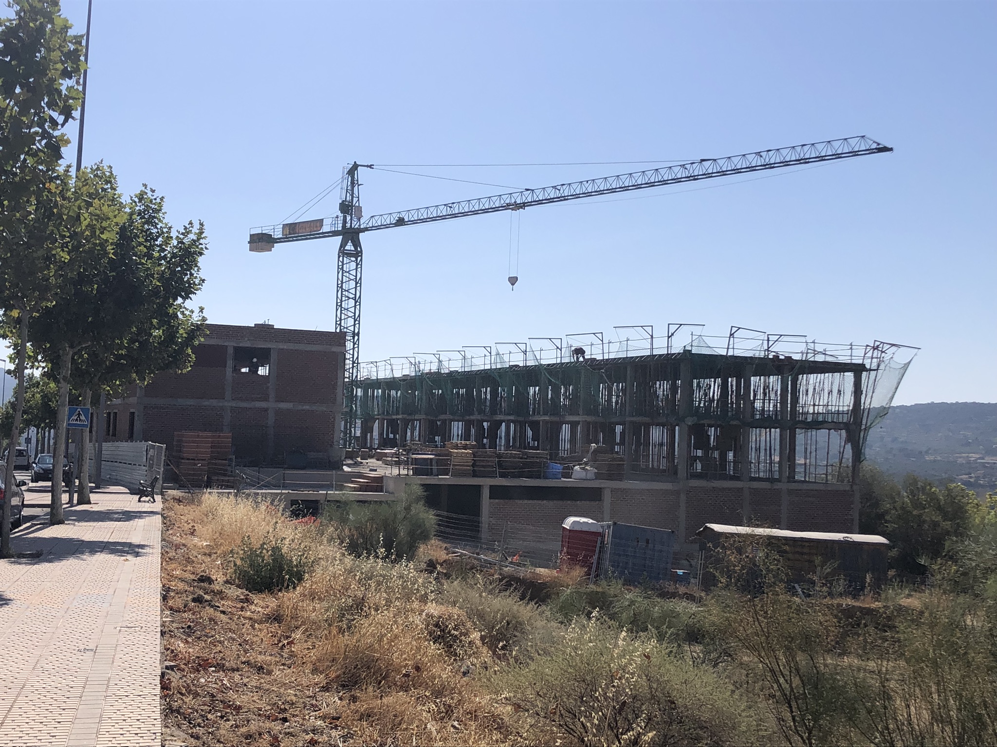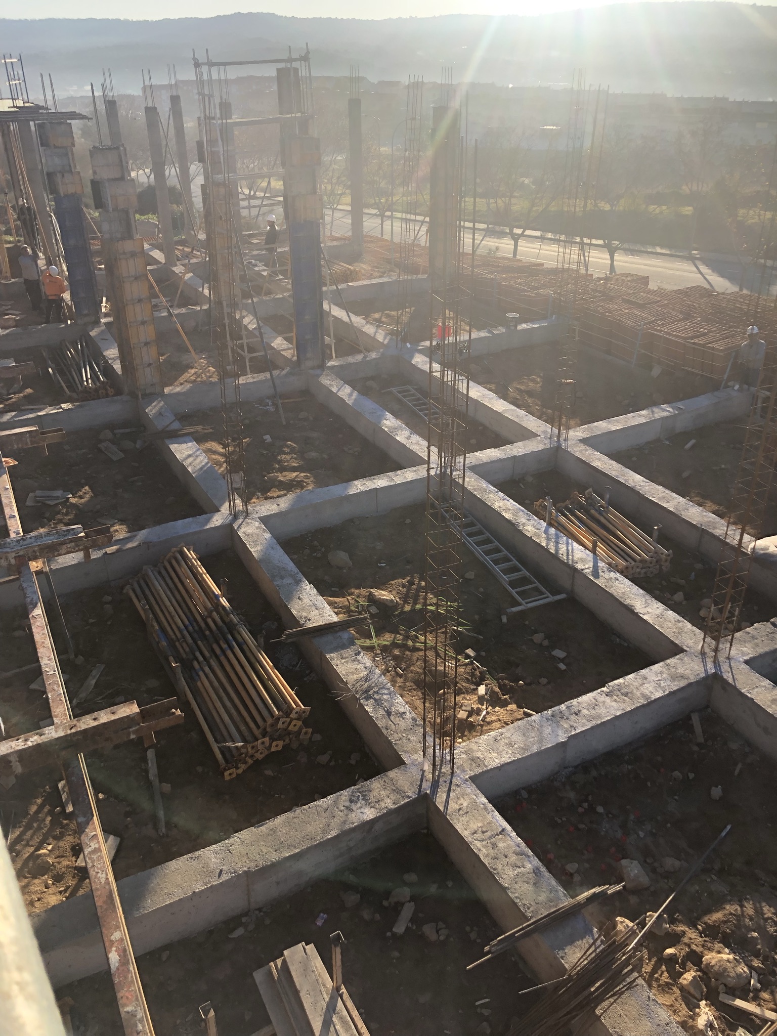 Promoción de 24 viviendas y garajes situada en Plasencia. A destacar el gran desnivel de la parcela que obligó a generar un nivel intermedio entre cimentación y el primer forjado para atar los pilares.